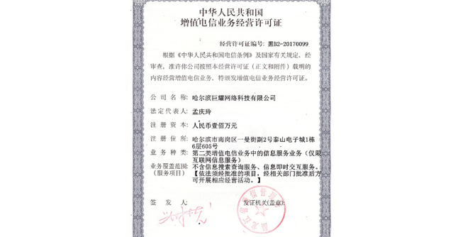 | 哈爾濱巨耀網(wǎng)絡科技有限公司·版權所有 | 地址:哈爾濱市南崗區(qū)西大直街118號哈特大廈17層 |